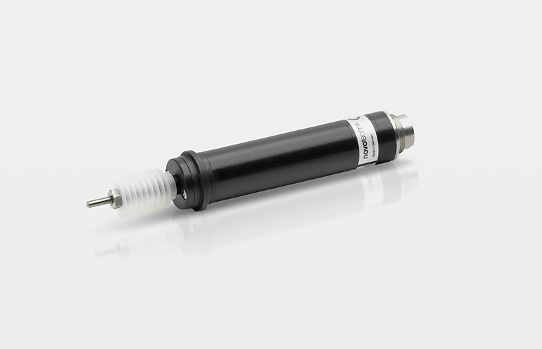 Absolute, inductive transducer with centering collar, integrated sealed hybrid electronic, DC power supply; floating DC voltage output, good temperature stability, maintenance-free plastic plain bearings and bellows; long long life.