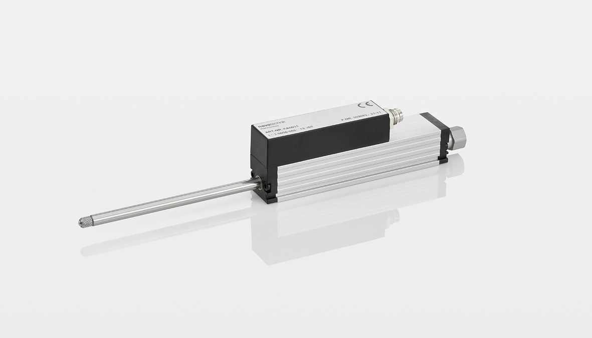 Absolut transducer with integrated signal processing. Designed for direct position measurement of fixed objects or contour scanning of moving objects by roller head. Replaceable without new calibration.