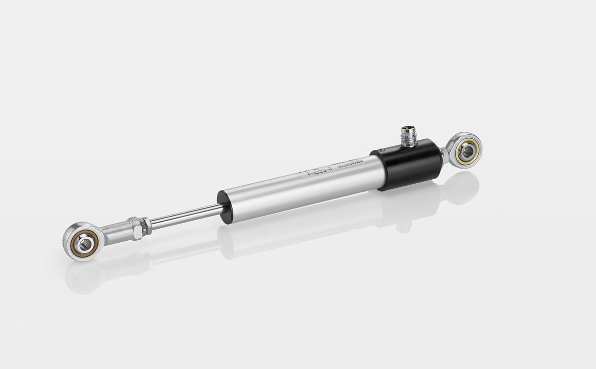 Potentiometric, absolut position transducer with double supported actuating rod; long life and high adjustement speed; decoupled wiper tap; easy to assemble via low-backlash pivot heads with a large angle of freedom; High protection class