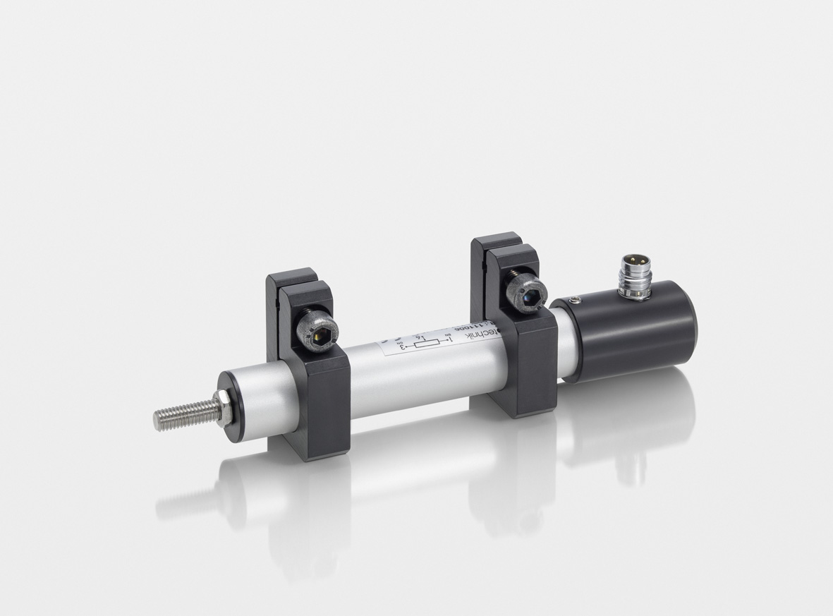 Potentiometric, absolut position transducer; robust design with metal flanges and pressure equalization system with GORE-membran; long life and high adjustement speed; easy to assemble via low-backlash pivot heads with a large angle of freedom; High protection class